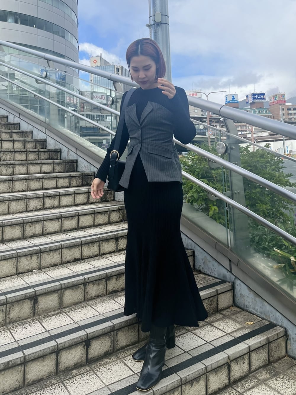 モノトーンコーデ♡ 《ワンピース》 一枚でお洒落見え、着痩せワンピース! 締め付け感なく楽に着れました♡ 《ブーツ》 中のクッションとお素材が柔らかく、長時間履いていても疲れません!先端の形もスクエアなので、足のお悩みがある方も履いていただけます👢
