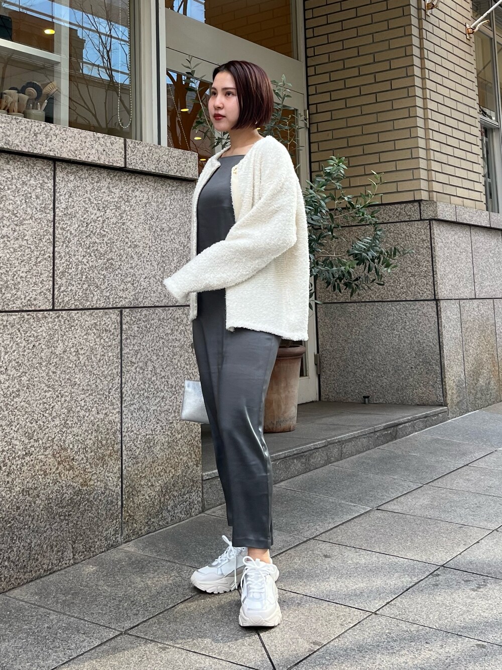春コーデ🤍🤍 《ワンピース》 さらさらで着心地抜群!🙌 レイヤードしても一枚でも楽しめます😌 《カーディガン》 店頭でも大人気! 羽織るだけで春っぽくなれて、丈感が気になるところを隠しスッキリ見せてくれます😊