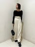 モノトーンコーデ🖤 《トップス》 伸縮性のある生地で着心地抜群!薄手のニットなので秋→春まで着用可能です🫰 インナーにしても可愛いですし、一枚で着ても様になるので着回し力も抜群です! 《パンツ》 ウエストがベルトで絞れるため、華奢な方も着用していただけます🫶 ハイウエストで脚長効果抜群!ラフなシルエットですがウエストが絞れることで綺麗目に着用いただけます ◎159cm Sサイズ着用