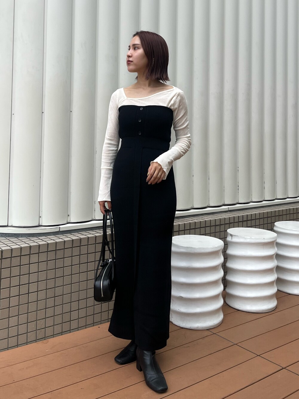 NANAMI NAKAMURA(LAGUNAMOON)のショルダーバッグ「スムースタッチミニボストン」を使ったコーディネート