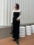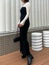 モノトーンコーデ🖤 《ワンピース》 全体的に伸縮性があり、着心地抜群。 インナー次第で季節も長く使って頂ける万能アイテム。足元のスリットが程よい抜け感をだしてくれます☁️🖤 体のラインもひろいすぎず、綺麗に見せてくれます。 ◎159cm Mサイズ着用 足首まで隠れる丈感です。 《トップス》 少し透け感のあるトップス☁️ インナーはトップスの色味に合わせることをお勧めします! 生地は伸縮性があり、さらっとした肌触りです。インナーにも一枚でもお洒落に決まる一枚。