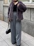 大人っぽコーデ🖤 《アウター》 ふわっふわの触り心地。ミドル丈でママさんにもおすすめな丈感です。 腕周りはゆるっとしているので、とっても楽ちんに着ていただけます◎タイトなシルエットのものと合わすとバランスがとれて綺麗なのでオススメです😌 《トップス》 前後2wayで楽しんで頂ける一枚。生地はサラッとしていて、伸縮性があるため着心地抜群。インナーにも一枚でもお洒落にきまります🤍 《パンツ》 美シルエットとハイウエストで脚長効果抜群な一枚。 履き心地は締め付け感なくとても楽ちんです。 綺麗目なスタイル、カジュアル目なスタイル、幅広くあわせていただけます🔍 ◎159cm Sサイズ着用
