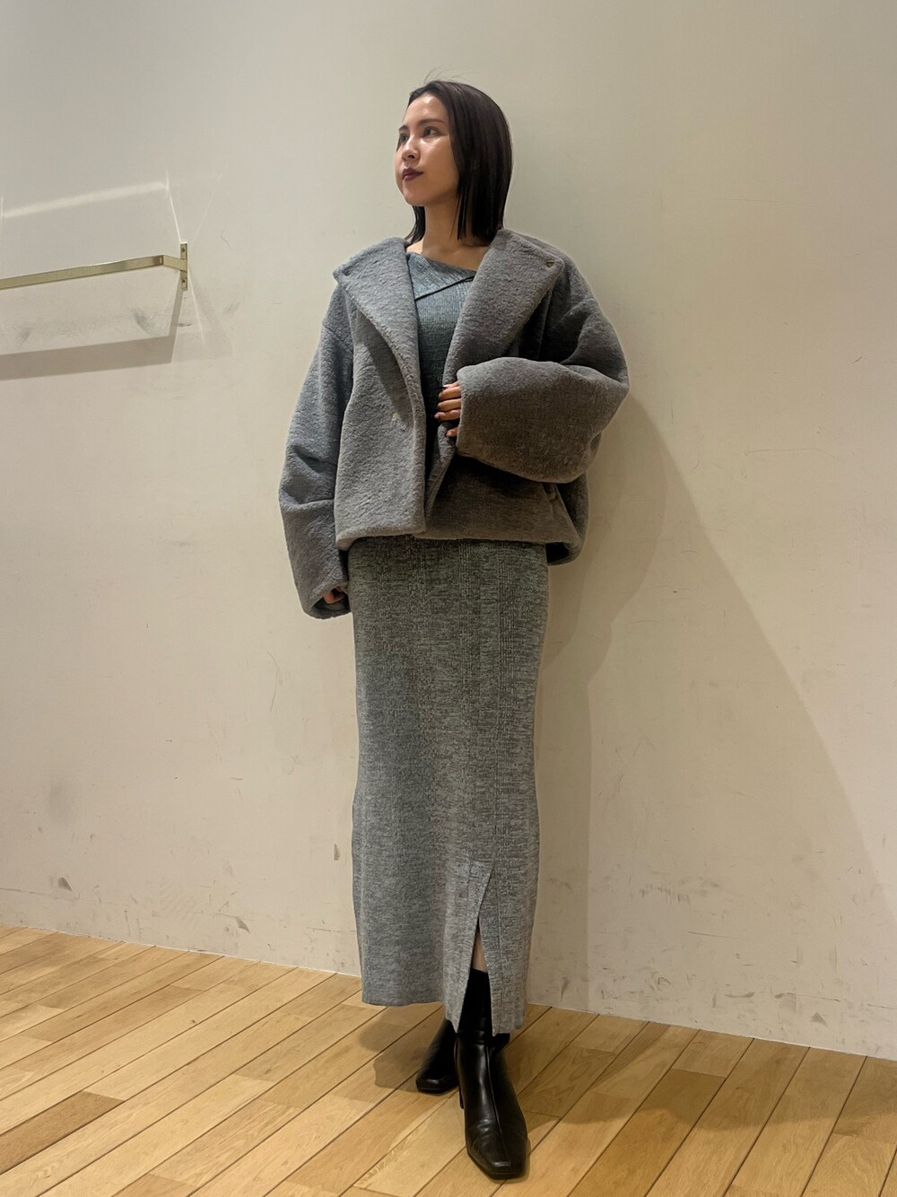 グレーコーデ🖤 《アウター》 着るだけでお洒落感のでるシンプルなのに存在感のあるアウター🖤 ゆったりめのサイズ感なので、どんなインナーでも羽織って頂けます。 ショート丈のため、小柄な方にもおすすめです。 《ワンピース》 タイトすぎないIラインのニットワンピ。デコルテもすっきり見えて細見えします🫶 全体的に伸縮性もあり着心地も楽ちんです。 シンプルなデザインなのでコートやダウン、アウターも合わせやすいです! ◎159cm Sサイズ着用