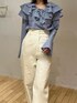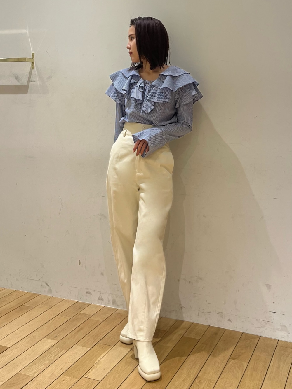 《ブラウス》 一枚でお洒落になれるブラウス。 お家で手洗いができて シワにもなりにくい生地なので 扱いやすいです!😌 カジュアルにも綺麗目にも ボトムスで雰囲気を変えて楽しめます。 フリルですが甘くなりすぎないところが お気に入りポイントです☑️ 《パンツ》 ウエストはきゅっと細見えしますが うしろはゴムが入っているため 楽ちんな着心地でした◎ ハイウエストで脚長効果抜群な一枚。 白でも透け感がなく インナーも気にせず着用頂けます。 ◎159cm Sサイズ 足首もすっぽり隠れる丈感です。