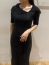 《ワンピース》 春ニットワンピース🖤 タイトめなシルエットですが 伸縮性があり着心地楽ちんです! デコルテデザインがお洒落で インナーも見えない仕様になっています🙆♀️ ◎159cm Mサイズ 足首も隠れるサイズ感になります。