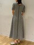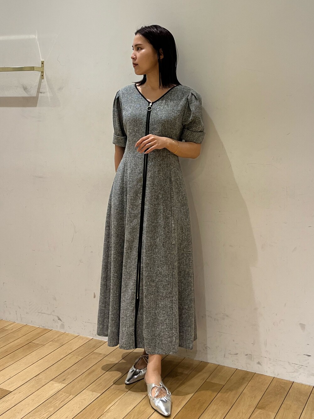 《ワンピース》 フロントジップで着脱がとっても楽ちん! 二の腕も隠れるうえに折り返しデザインなので 肩や腕まわりが華奢に見えます🤭 ◎159cm Mサイズ 足首少し隠れる丈感です。 《シューズ》 低めのヒールで楽ちん! 紐で幅を調節できるので 足のお悩みにそって履いて頂けます🙆♀️