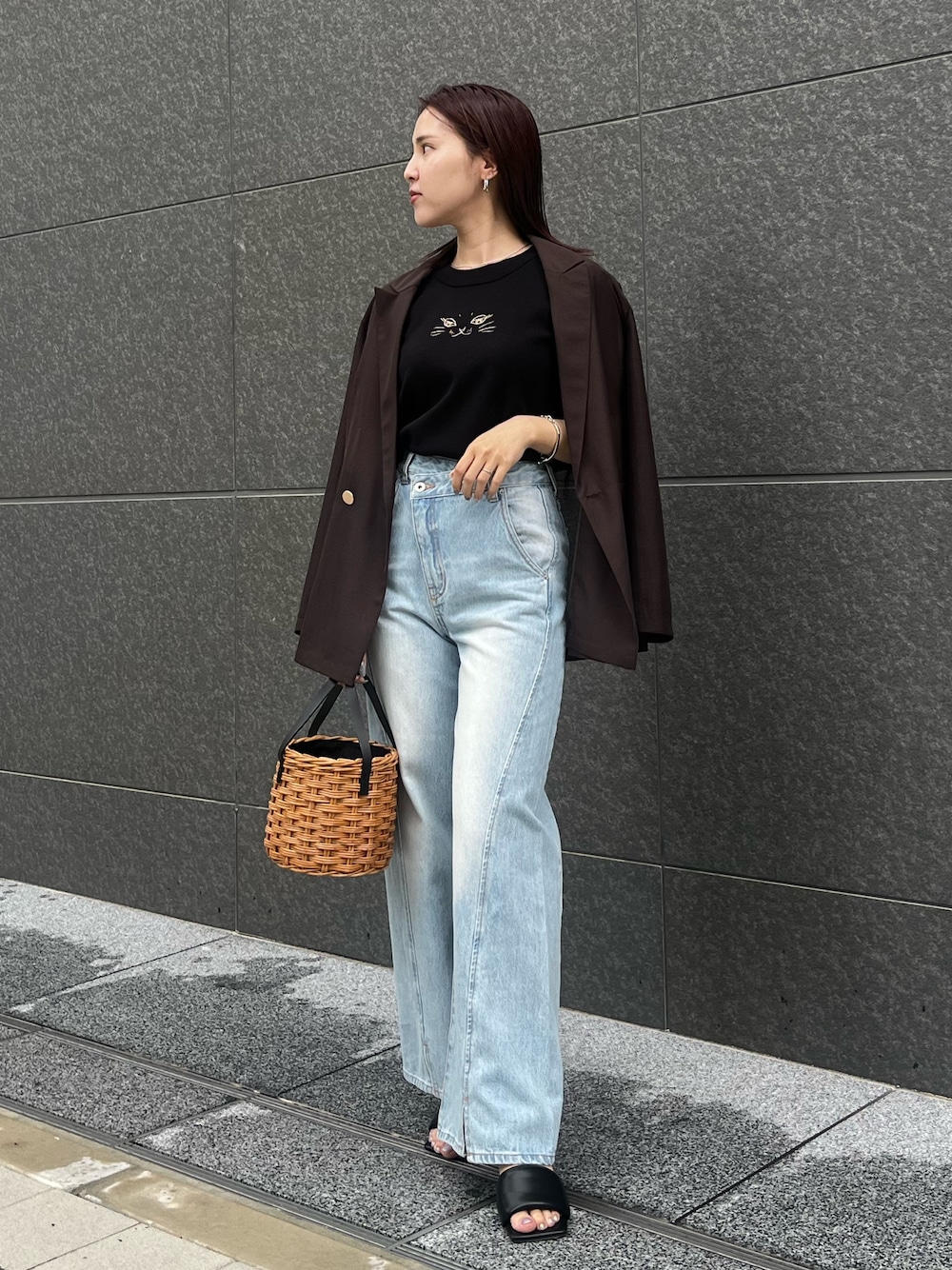 《ジャケット》 メッシュなので夏も快適に過ごせます◎ シワにもなりずらく、扱いやすいです! 後ろがぎゅっと絞れるので 骨格ウェーブさんにとってもおすすめ💪 《トップス》 伸縮性があり着心地抜群です! 一枚でお洒落に着こなしていただけます🤍 《デニム》 裾にスリットが入っているので スニーカー合わせでも重たくなりすぎずに 着用頂けます!👌 《シューズ》 シンプルなデザインで何にでも合います🙆♀️ 柔らかくてヒールも低めなので楽ちんです! 《バック》 シンプルなコーデのアクセントに✨ 大きめなので荷物もたくさん入ります!