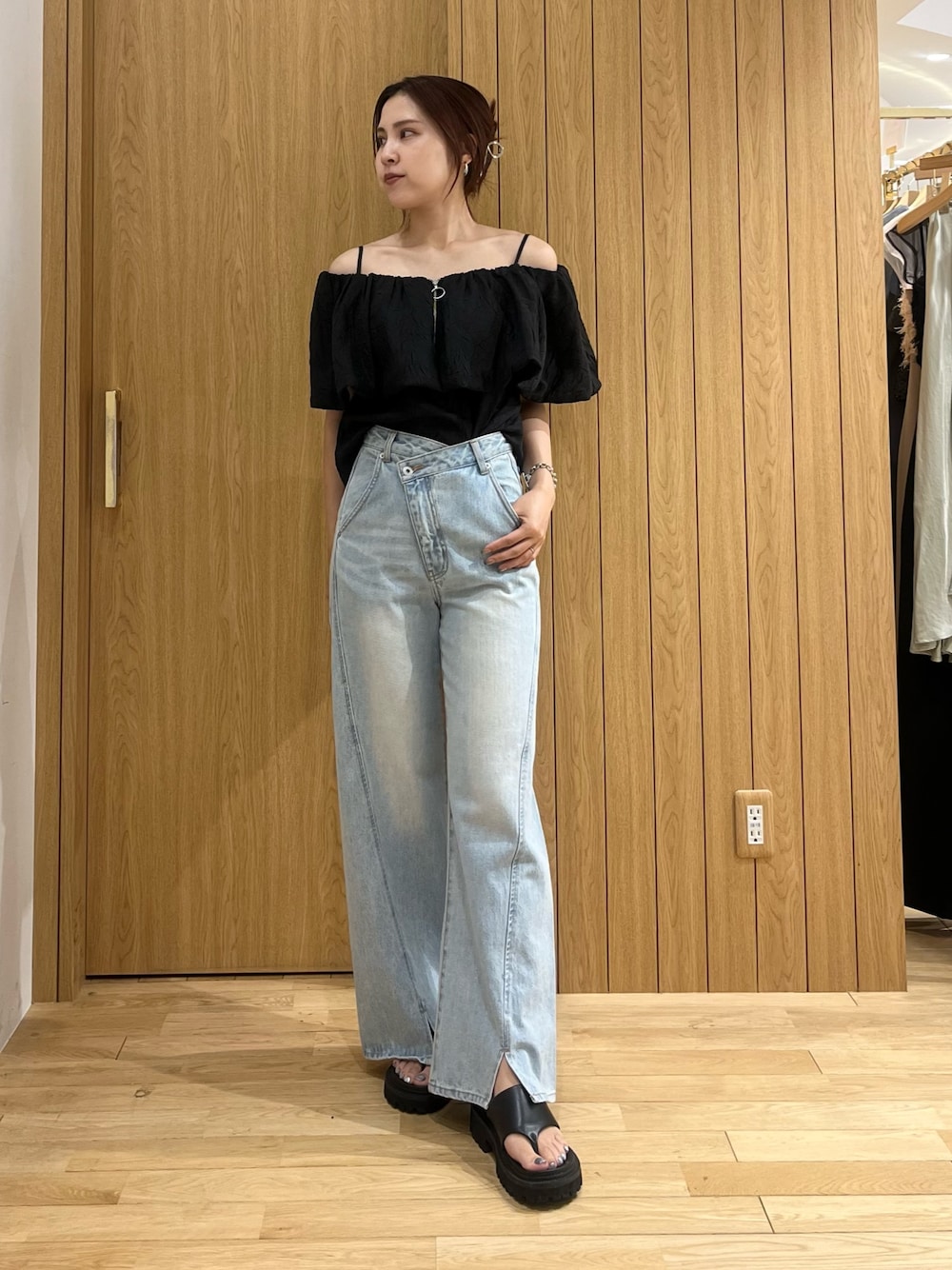 《トップス》 4wayで着れる着回し力抜群トップス。 サラッとしていて着るとひんやりする 夏にぴったりな素材。 腕も隠してくれて細見えが叶います✨ 《デニム》 裾にスリットが入っているので スニーカー合わせでも重たくなりすぎずに 着用頂けます!👌