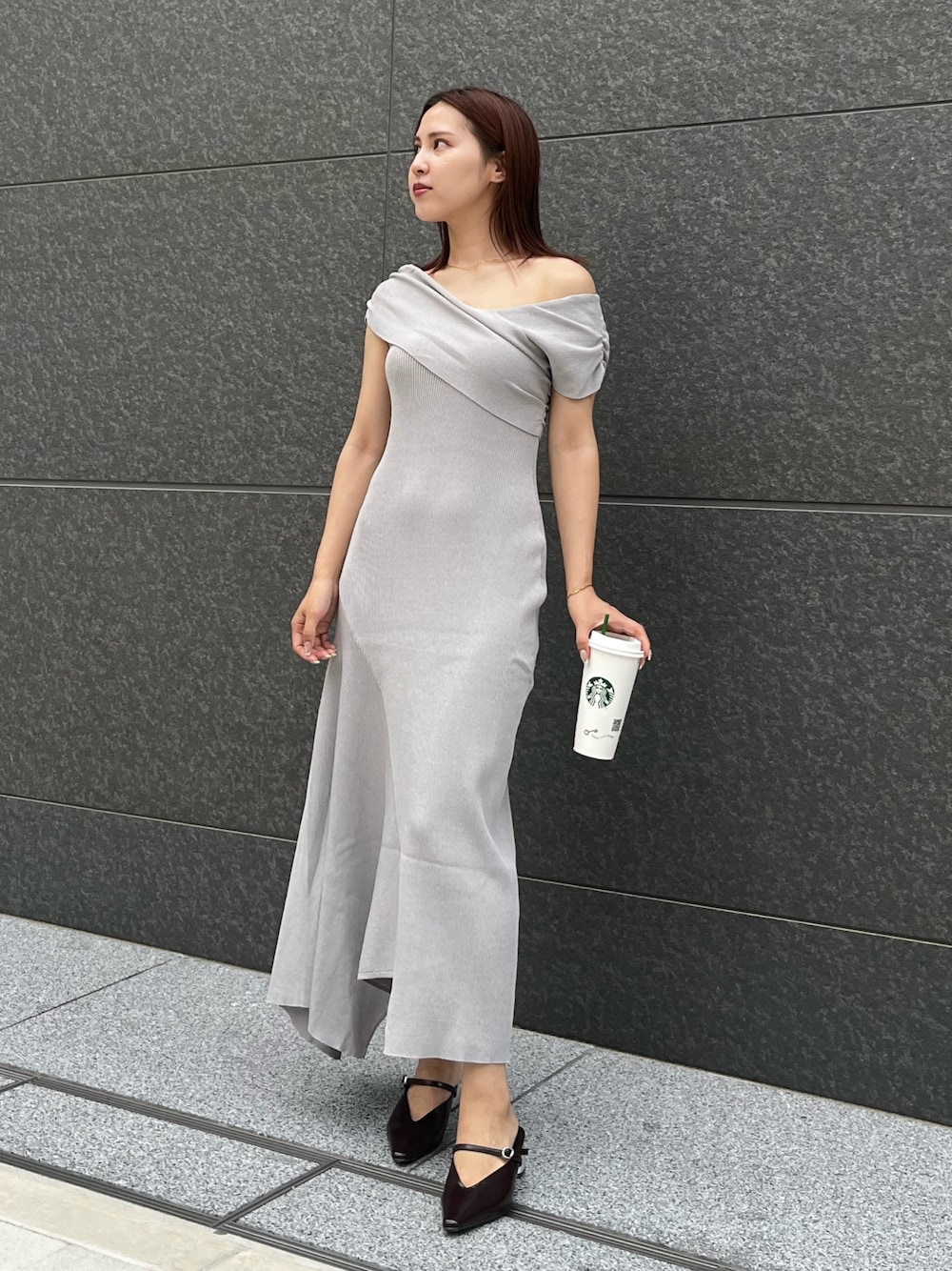 《ワンピース》 伸縮性があり着心地抜群なワンピ✨ 女性らしいシルエットで ラインを綺麗に見せてくれます❕ ◎159cm Sサイズ 《シューズ》 さっと履きやすい形がお気に入り🤍 ストラップ付きで安定感があり ヒール部分のデザインも可愛い!