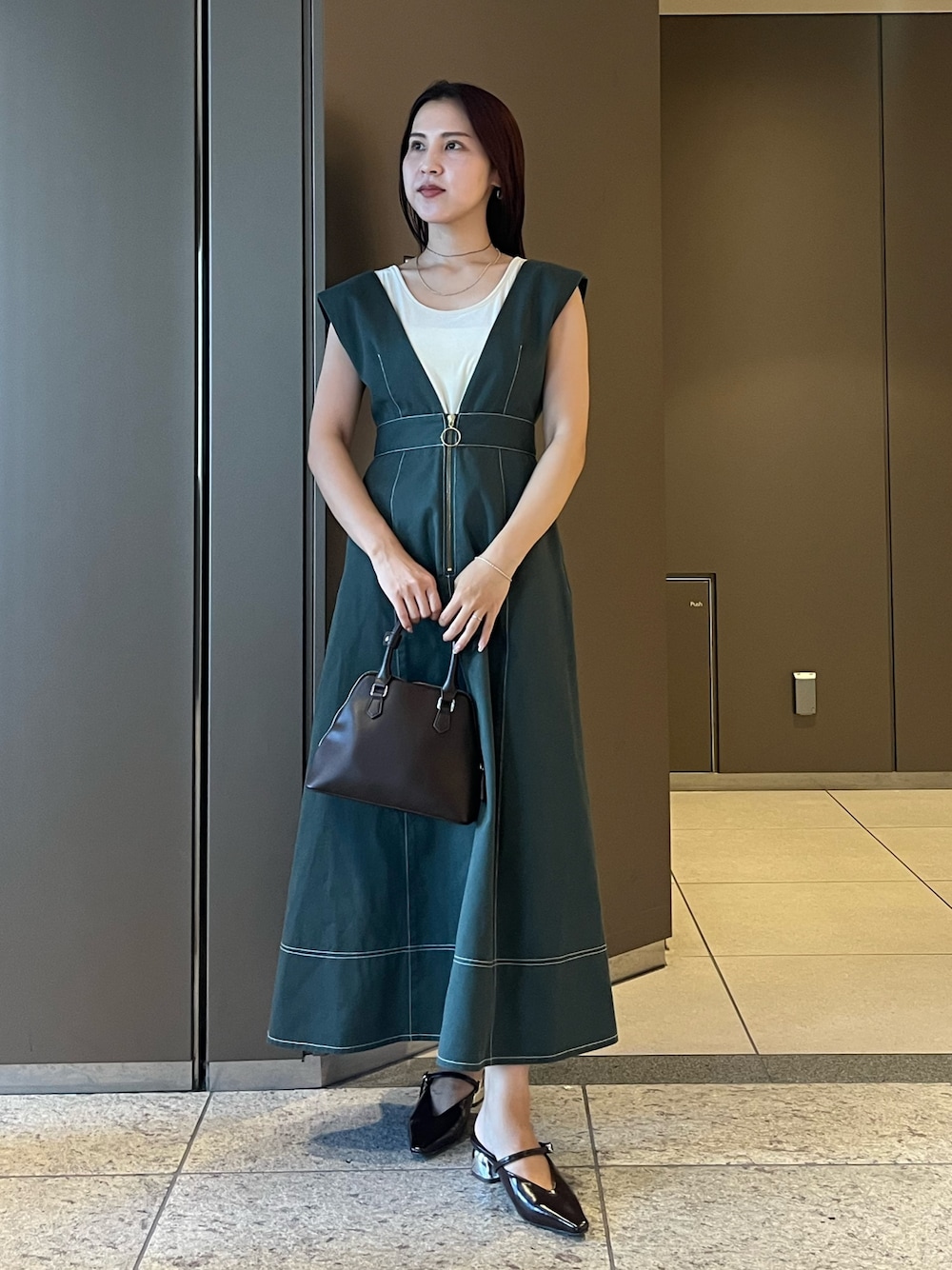 《ジャンパースカート》 着やすくてスタイルもよく見える 綺麗なシルエットのジャンスカ。 後ろはゴムなので妊婦さんや 授乳もしやすいので産後のママさんにも◎ 《インナー》 一枚でもレイヤードしても可愛い! 着まわせるので夏も秋も出番が多そう💓 《バック》 コンパクトなサイズ感だけど 以外と荷物が入る万能なバック。 お出かけにも子供連れの日にも◎ 《シューズ》 さっと履きやすい形がお気に入り🤍 ストラップ付きで安定感があり ヒール部分のデザインも可愛い!
