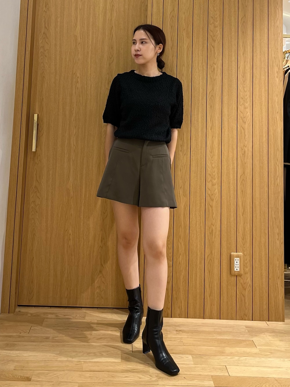 《トップス》 ふわふわの肌触りで着心地抜群! ぴったりしすぎてないシルエットが 着やすくて合わせやすい✨ 《パンツ》 大人でも履きやすいちょっと長めの丈の ショートパンツ🫶 シルエットも裾の方が広がっていて 足も細くみせてくれます💕 後ろはゴムが入ってます◎ 《ブーツ》 ヒールだけど安定感があり楽ちん✨ 普段ヒール履かない方にもオススメ!