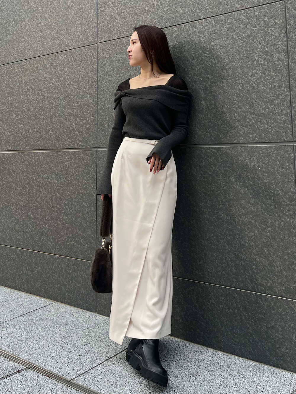 NANAMI NAKAMURA(LAGUNAMOON)のスカート「サテンラップデザインサテンナロースカート」を使ったコーディネート