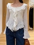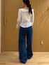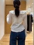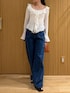 《トップス》 フリルとレースで一枚で 可愛すぎる春トップス✨ さらさらの着心地で伸縮性も◎ 《デニム》 前ポケットでお腹周りもすっきり 見せてくれるのが嬉しい✨ ワイドすぎないのでどんなトップスとも 相性抜群です!!