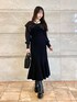NANA(MERCURYDUO)のワンピース「異素材ラッフルスリーブマーメイドニットワンピース」を使ったコーディネート