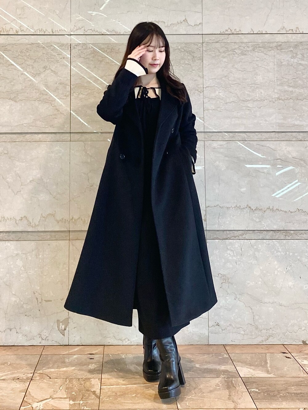 アウター、ウエストがくびれて見える美シルエット!!!裾に広がるフレアな形も上品で可愛い♡ 身長155cm、Sサイズ着用で足首よりも上の丈感です^^