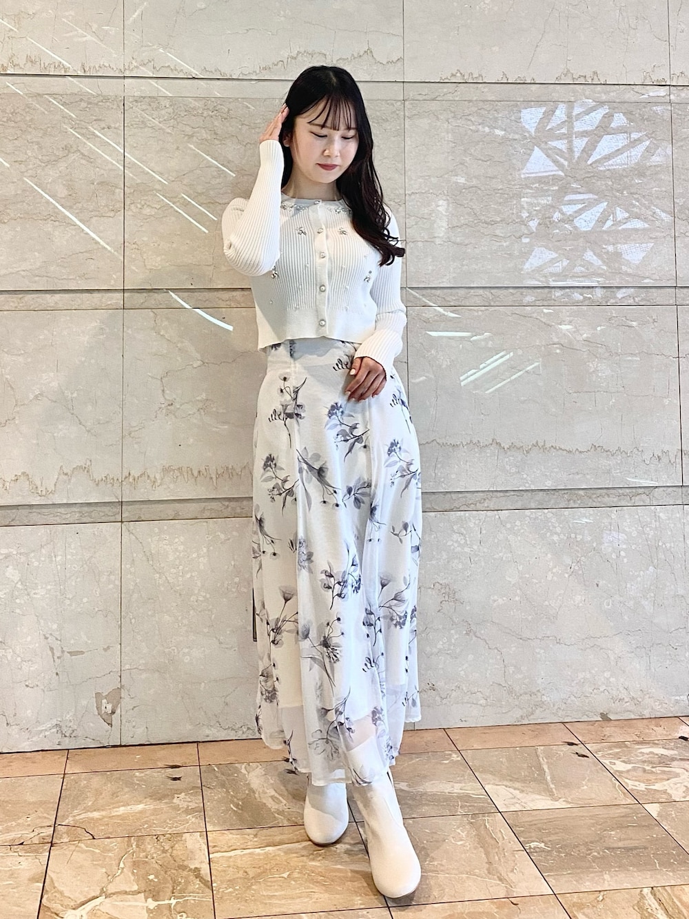 NANA(MERCURYDUO)のスカート「シアーフラワーパイピングフレアスカート」を使ったコーディネート