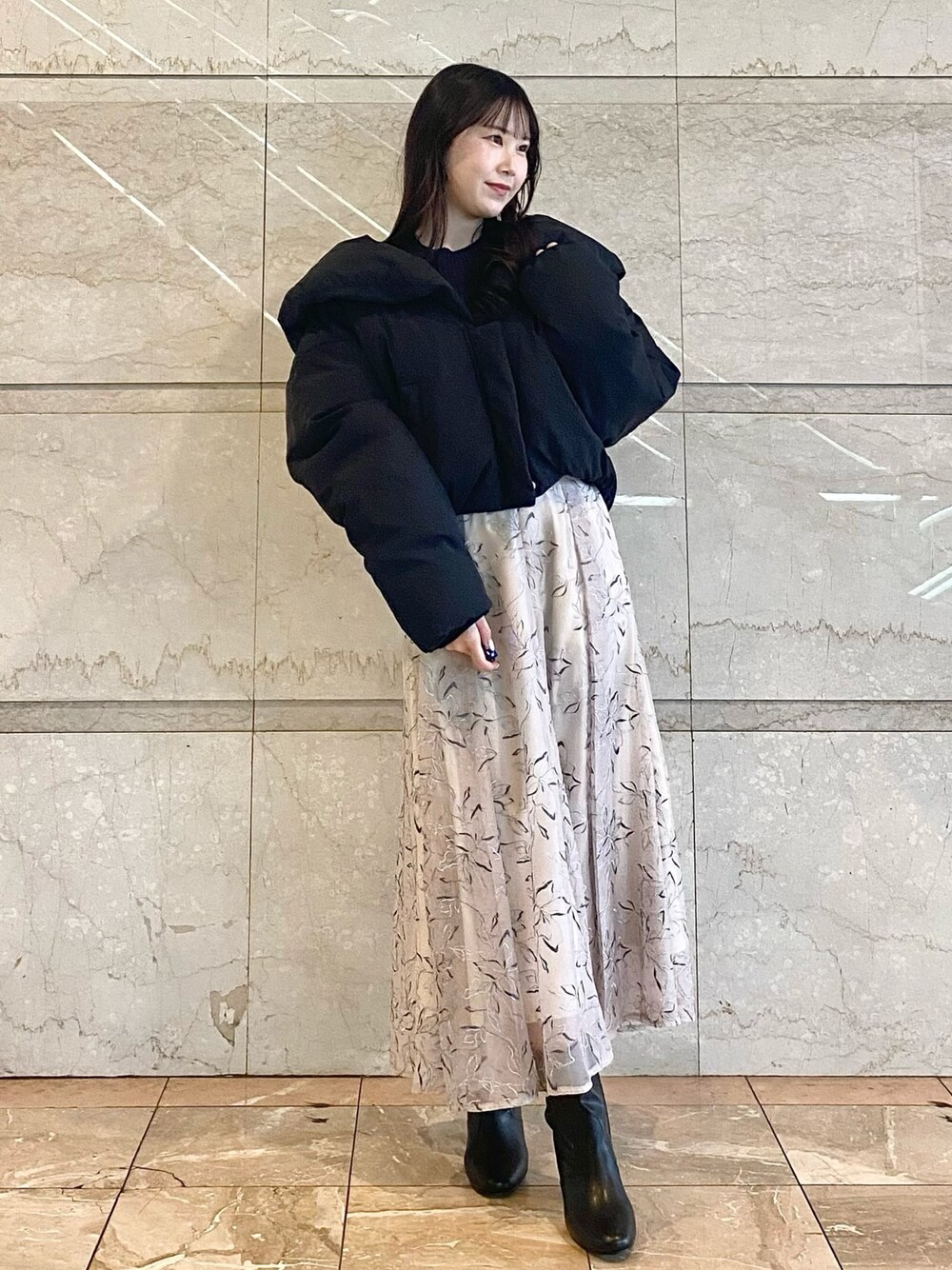NANA(MERCURYDUO)のスカート「オーガンジーフラワー刺繍スカート」を使ったコーディネート