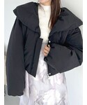 アウター、中綿でふんわり暖かい! クロップド丈でコーデがすっきり決まるし、ビックカラーで首元すっきり抜け感作れます!