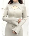 NANA(MERCURYDUO)のワンピース「2WAYカットアウトタイトリブニットワンピース」を使ったコーディネート