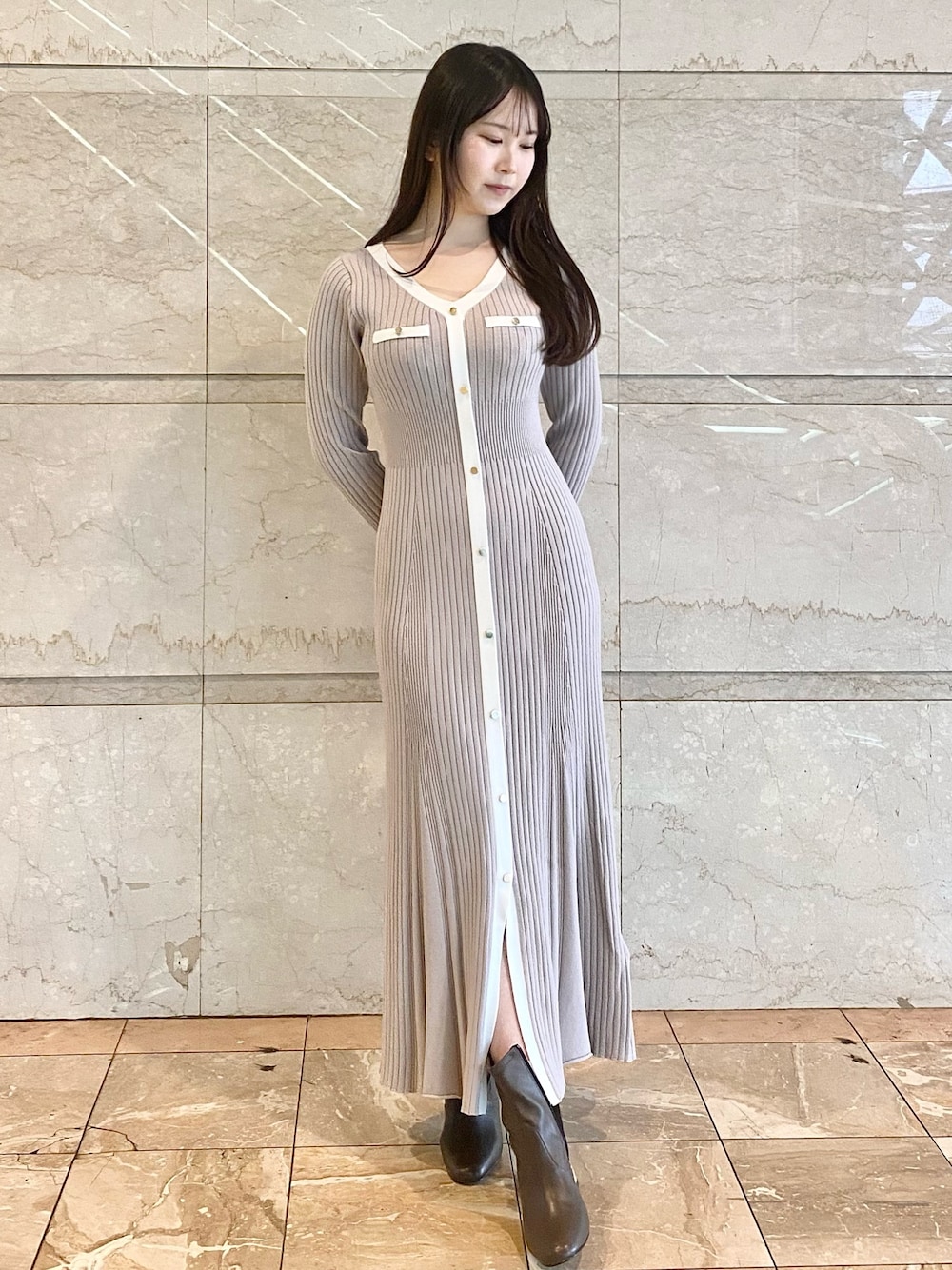 NANA(MERCURYDUO)のワンピース「バイカラーリブマーメイドニットワンピース」を使ったコーディネート