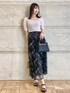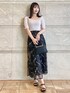 トップス、大きなシフォンのリボンがポイント♡首元はVでスッキリと、流行りのショート丈でスッキリ! スカート、流れるような小花柄が上品らしく華やかに! シアーの素材なので足元透け感出て軽やかに履けます! 身長155cm、Sサイズ着用で足首上の丈感です^^ シューズ、ヒールは低めの5cmくらい! 長時間はいても疲れづらいし夏の一足におすすめ! 普段24cm、38のサイズ着用でちょうどいいサイズ感です^^
