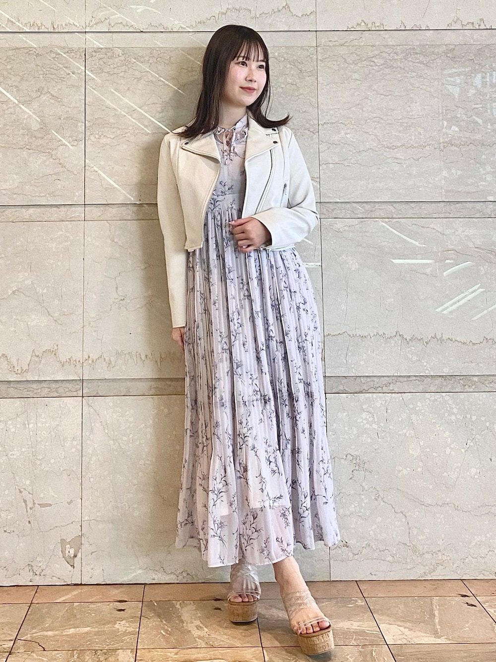 NANA(MERCURYDUO)のワンピース「花柄ラッフルプリーツティアードワンピース」を使ったコーディネート