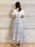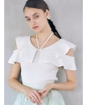 トップス、ラッフルがさりげなく二の腕カバーしてくれる最強ニット!今回はリボン外して首元すっきりにしてみました! スカート、散りばめられたスパンコールがキラッと光って華やかです!ウエストはコルセットのようなフィット感があるフレアスカートです! 身長155cm、Mサイズ着用で足首隠れる長さです^^