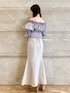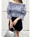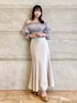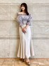 トップス、オルショルブラウス!キラキラした素材でチクチクもしません!5部袖なので夏でも涼しげに着れます! スカート、バックレースのマーメイドスカートで形がとにかく綺麗です!スリットも入っててタイトでも歩きやすいデザインになってます! 身長155cm、Mサイズ着用で足首下の丈感です^^
