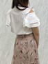 ♯トップス ボウタイリボンが甘めなブラウス お袖はフリル3段で、 ボタンを外すと二の腕カバーしっかり出来る ♯スカート ウエスト細見えのフレアスカート キラッと刺繍が上品で、 透け感があって涼しげです 身長155cmMサイズで足首下の丈感です