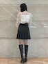 #トップス 前後2wayのブラウス。 デコルテから袖部分はシアー素材で、 インナードッキングされてるので透け感は気になりません。 #スカート インパンになってるのでミニでも安心です。 コルセットのようなデザインでシルエットすっきり見せてくれます。 身長155cm、Sサイズ膝より8cmほど上の丈感です。 ウエストはゆったりめです。 #シューズ シンプルデザインのロングブーツ。 細身なのですっきりです。 普段24cm、36サイズでぴったりです。