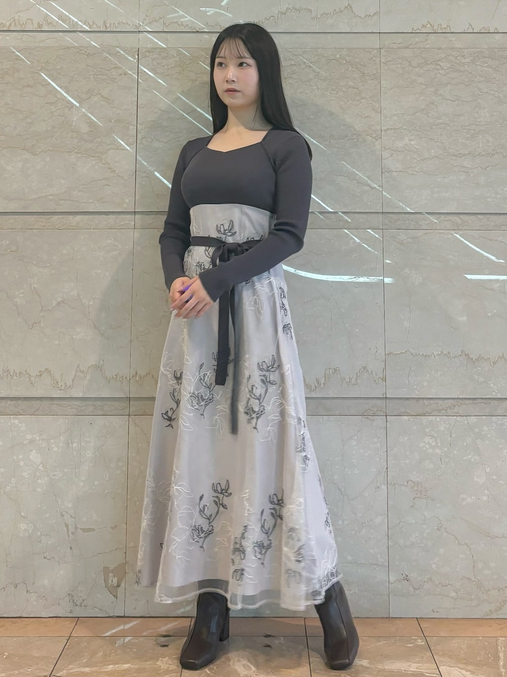 NANA(MERCURYDUO)のワンピース「エンブロイダリーニットドッキングワンピース」を使ったコーディネート