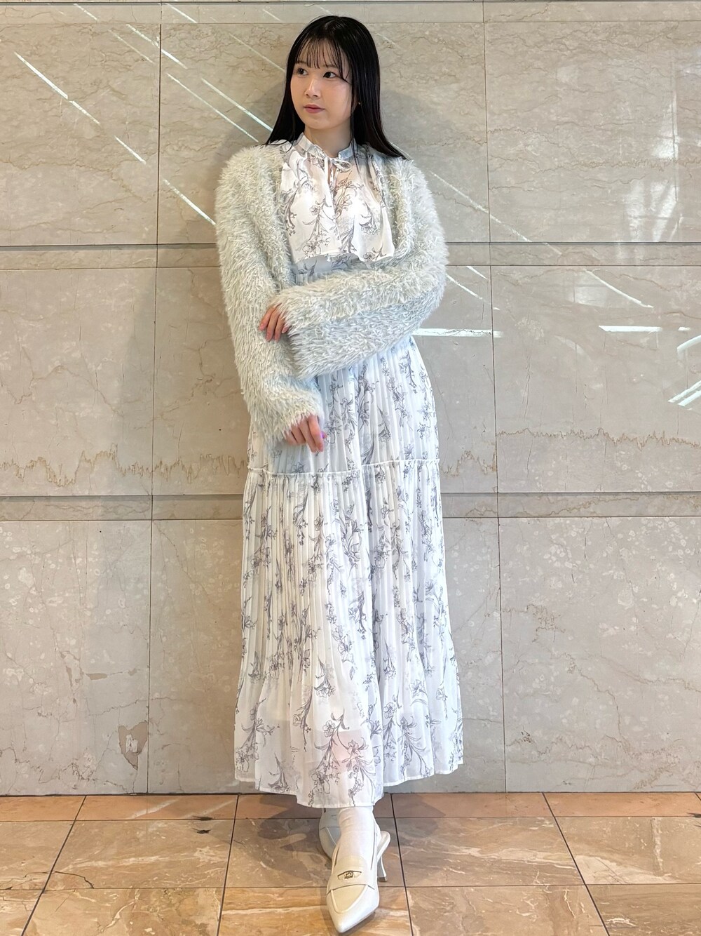 【カーディガン】 少し毛足の長いカーディガンで、お上品な感じに。 【ワンピース】 締め付け感の全くない着心地で、 程よい透け感が女の子らしくて可愛いです。 身長155cm、Mサイズで足首下の丈感です。 【シューズ】 ピンヒールのミュール。 普段24cm、36サイズでピッタリ感があります。
