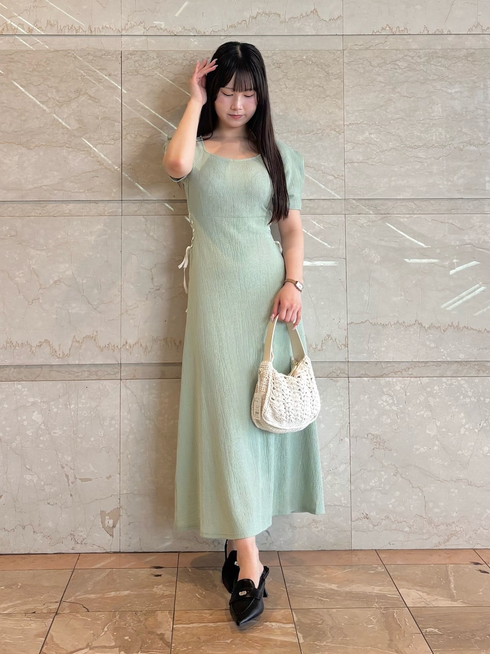 one-piece》S着用ですっきり着れる丈感です!通気性のいい素材で、ピタッとシルエットが綺麗です! bag》あみあみバッグは夏感出るのでオススメです! shoes》38着用でぴったりです!
