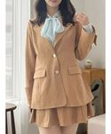 jacket》ウエストくびれる美シルエットなので、着膨れもないし初ジャケットに挑戦しやすいです! tops》ふわふわのファーニットは、厚すぎず薄すぎないので着膨れ無縁で、気持ちいいです!着丈は短めです! skirt》セットアップで着るとより可愛いミニスカートは、フレアシルエットなので骨盤の張りが気になりません!M着用で膝上15cmほどです! shoes》安定感バツグンで疲れにくいです!36着用でぴったりです!