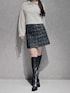 tops》ふわふわのファーニットは、厚すぎず薄すぎないので着膨れ無縁で、気持ちいいです!着丈は短めです! skirt》ブラック×ブルーのツイード生地で他と被りません!台形なので足もスッキリ見えます!S着用で膝上10cmほどで大人なミニです! shoes》安定感バツグンで疲れにくいです!36着用でぴったりです!