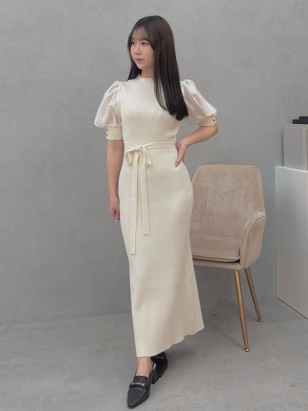 one-piece▶︎リボンはお好みで取り付けれます!ピタッとしたニットでシルエットが綺麗に出ます!袖の部分は下に大きく穴が空いててよりふんわり見せてくれます! shoes▶︎安定感バツグンで疲れにくいです!36着用でぴったりです!