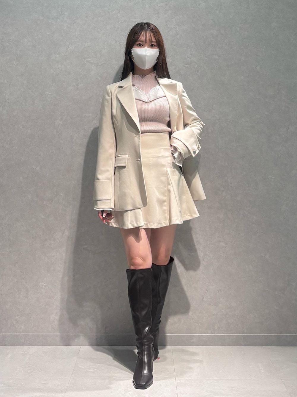 outer▶︎ウエストくびれる美シルエットで、綺麗めにきれます!S着用でジャストサイズです! tops▶︎胸元のフリルがハートっぽい形でキュートな雰囲気に!袖のフリルも長めで盛れます! skirt▶︎ハイウエストで足長効果抜群!S着用で膝上15cmくらいです! shoes▶︎安定感バツグンで疲れにくいです!36着用でぴったりです!
