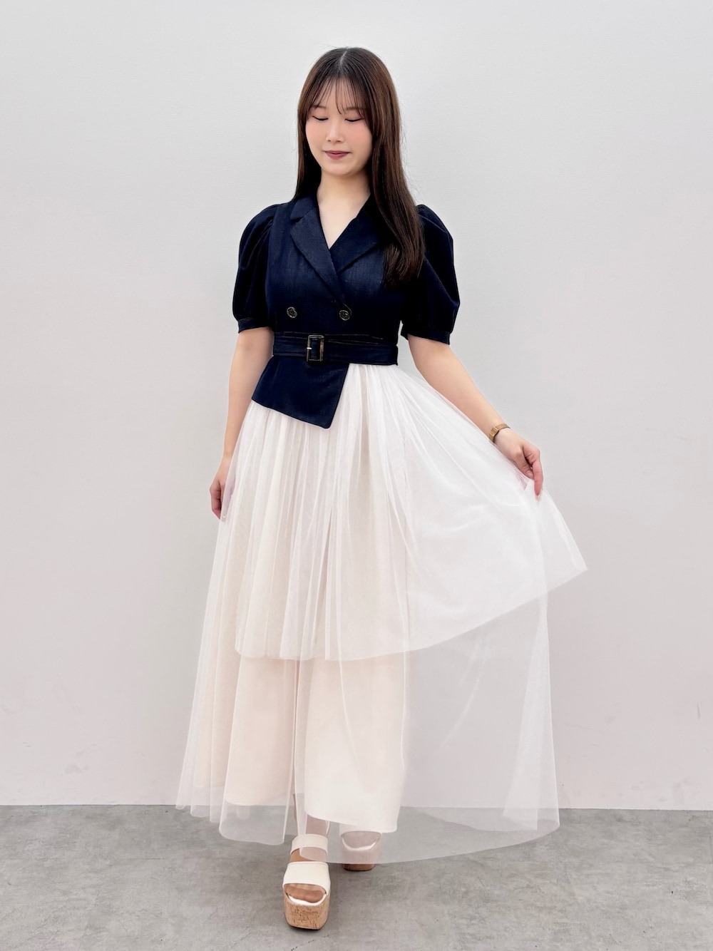 one-piece▶︎トップスとチュールがくっついてるデザインで後ろファスナーで簡単に着脱できます!チュールの透け感が蛇腹になってて綺麗です!M着用で足首下の丈感です! shoes▶︎安定感バツグンで疲れにくいです!36着用でぴったりです!