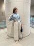 【Tops】 サラッとした肌触りと程よく伸縮性のある素材で、着心地抜群✨✨ 肌見せ部分が肩にあることでどの角度からでも、大人っぽさと上品さを出してくれます😌✨ 袖は捲りやすいリブ素材なので、お仕事や家事をされる方にもオススメです! さらに手洗い○なのでお家で洗えるのも嬉しいポイント! デニム合わせでカジュアル、スカート合わせで綺麗めなどにしていただいても👍🏻 【Pants】 ハイウエストで脚長効果&細見えが叶います✨ ベルトやタックなどウエストマークがしっかりあるワイドパンツなので、どの骨格の方でも挑戦してもらいやすい一枚! 後ろゴムで伸びが良く、少しツルッとした素材が上品さをプラスしてくれます◎ 程よいワイド感なので、オーバーめなトップスをインせずに着てもらうのも可愛くてオススメ🤭 透け感が気になる方は、下にペチコートやシームレスのものを履いていただくと👍🏻
