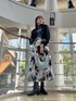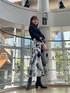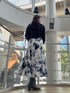 【Outer】 ラグナムーン定番柔らさが特徴「CIMARRON JEANS」とのコラボジャケット。 デニムとは思えないくらい凄く柔らかい+軽い! タックが入っていてゆったりしているので、どんなトップスの上からでも👍🏻! (冬のニットやスウェットも!) 脇下部分にもゆとりがあり、動きやすさも◎ ショート丈で、特にトレンドのハイウエストなボトムスと相性抜群!💯 ガッツリカジュアルにも綺麗めカジュアルにもなるので、色々なスタイルを楽しみたい方にオススメです♡ 【Tops】 少し透け感と光沢感のあるオシャ見えトップス。 薄手でフワフワと柔らかく、首も詰まりすぎていないので窮屈感ゼロ👍🏻 9〜10月頃は一枚でトップスとして、11月以降はニットやスウェットと重ね着しても可愛くてオススメ💙 絶妙なくすみブルーなので、スカートとリンクしたカラーコーデにしてみました🤭! 【Skirt】 一枚でオシャレなペイント柄スカート。 ニュアンスっぽい柄でトップスがシンプルでもオシャ見え間違いなし!✨✨ ハイウエストになっていますが、後ろゴムなので窮屈感なし! 太ももからのヘムラインボリューム出しつつも、広がりすぎない絶妙なフレアが可愛いすぎる💕 身体のラインを拾わないので、どの骨格の方でも挑戦してもらいやすいスカートです◎ 少し薄めの生地感ですがポケットもあり、レギンスなどを下に仕込ませれば秋〜春まで長く着られます😌
