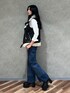 永田真弓(EMODA)のムートンコート「フェイクムートンロングベスト」を使ったコーディネート