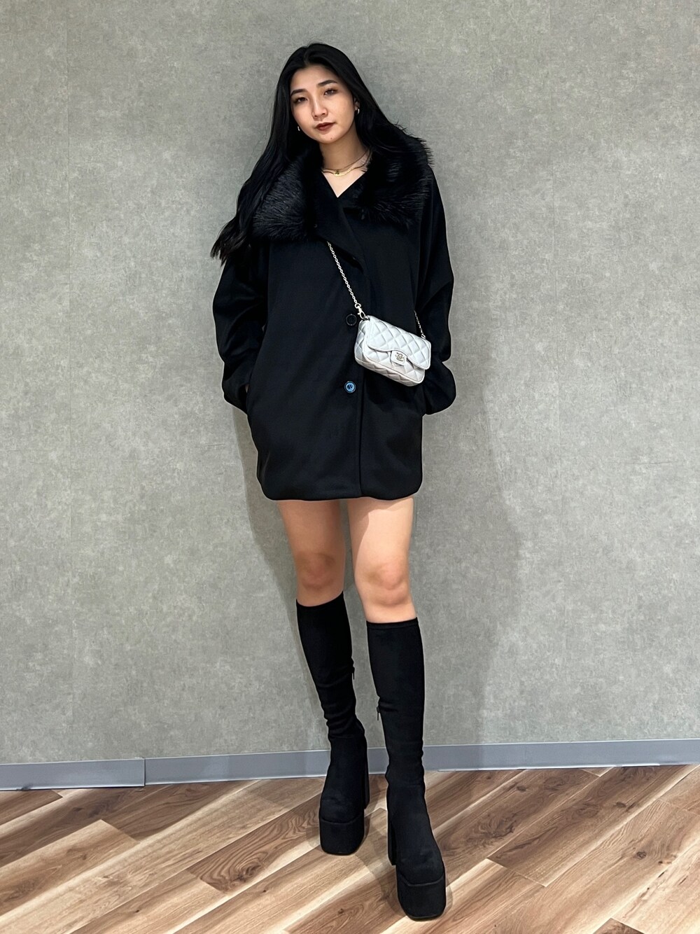 【アウター】 ファーが取り外しも可能なアウター♡ 首元がスタンドにもなるのであったかいです! クリスマスデートとかにもおすすめ! 【スカート】 インナーパンツついてるのでとても履きやすいです!♡フリーサイズなので、 お客様の体型に合わせやすいものになってます! 【シューズ】Lサイズ 店頭でも人気のロングブーツ🥾 傾斜がないので、歩きやすいです! それと軽い!スニーカーを履いてる感覚見たいに履き心地抜群◎ そして、タイツを履いてるみたいにタイトなので美脚効果もあります〜!