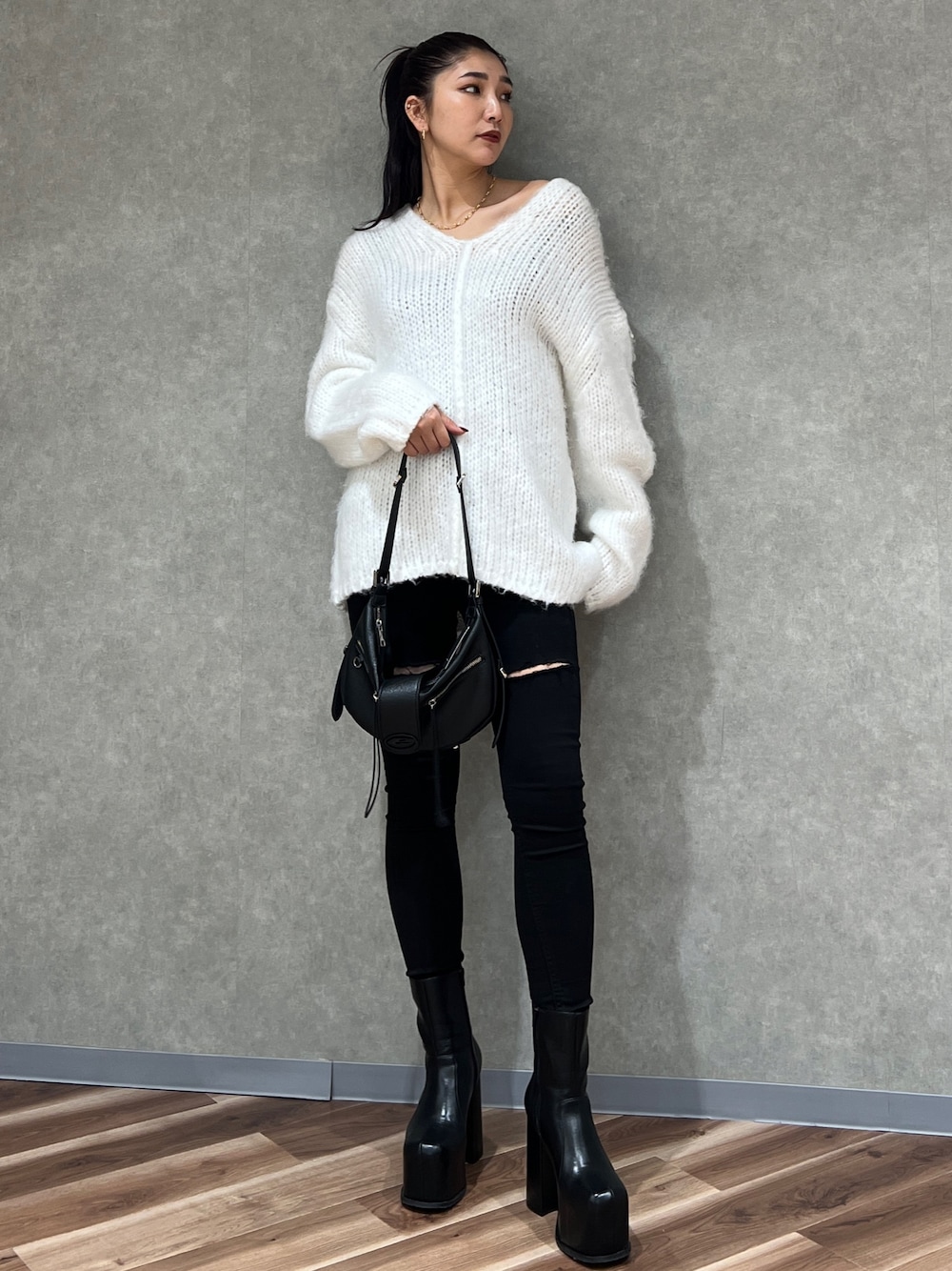 永田真弓(EMODA)のニット/セーター「オーバーサイズショルダーニット」を使ったコーディネート