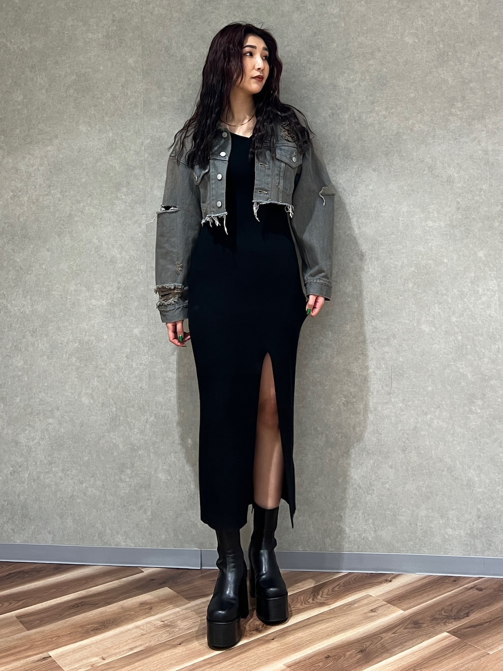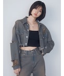 永田真弓(EMODA)のデニムジャケット「Wスリットカットオフデニムジャケット」を使ったコーディネート