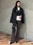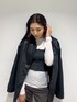 永田真弓(EMODA)のナイロンジャケット「【VEQUM】LEATHER LIKE NYLON JACKET」を使ったコーディネート