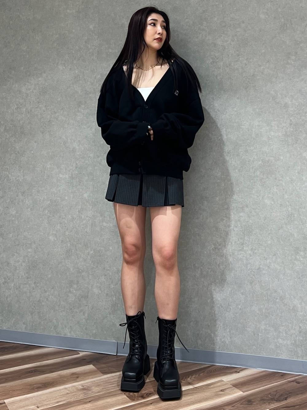 【カーディガン】 春に大活躍のカーディガン! オーバーめなので、シルエットが可愛い!横のラメがキラキラしてて可愛いです! 【スカート】 プリーツスカートインナーがついてて 安心して着られるのに足めちゃくちゃ盛れます(^^) 【シューズ】 Lサイズ