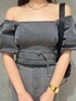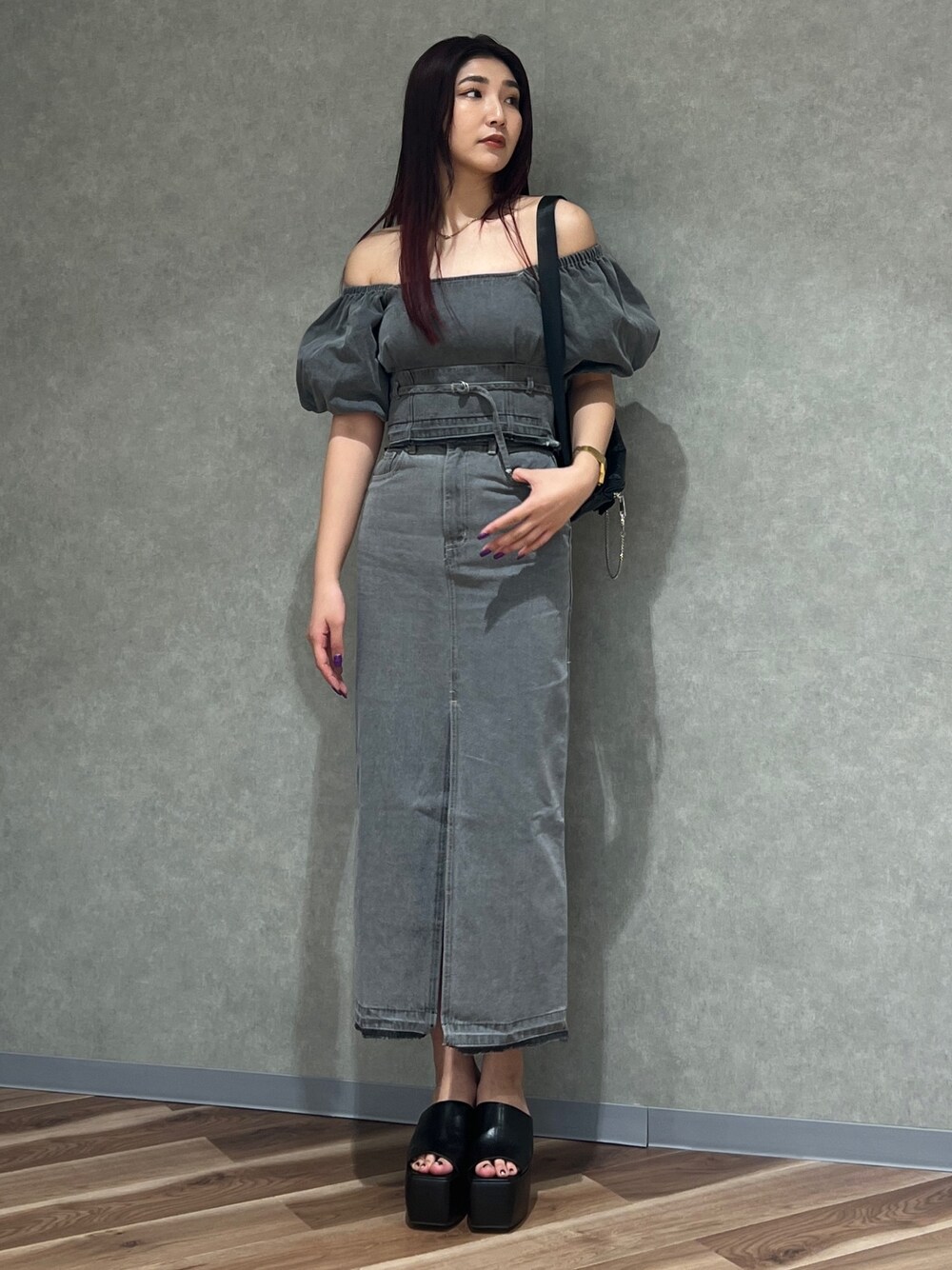 【トップス】 オフショルダーにもなるパフトップス! デニムの生地ですが、後ろがゴムみたいになってるのでとても伸びます☺️ 横がチャックになってるので、外してきてください〜 【ボトムス】 デニムスカートで、とてもハイウェストです!生地感も柔らかいので、着やすいですしTシャツに合わせても可愛いです!♡ 【サンダル】 Lサイズ