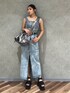 永田真弓(EMODA)のキャミソール「フロントジップデニムビスチェ」を使ったコーディネート