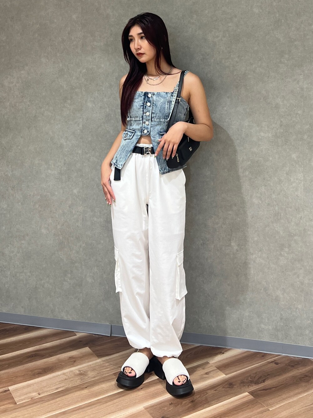 永田真弓(EMODA)のキャミソール「デニムキャミソール」を使ったコーディネート