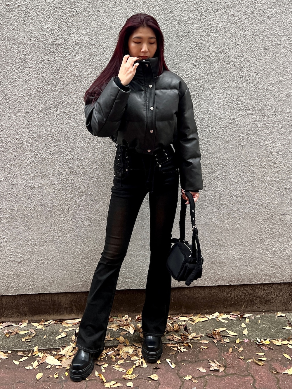 【アウター】 ショート丈のレザーダウンです!❤︎ ダウンとフェザーという暖かい素材が半分ずつしっかり入ってるので暖かいです☀️ レザーの割に柔らかい生地感なので、 動きやすいですし、厚手なニットと合わせても大丈夫です◎ 【デニム】 -5キロデニム❤︎❤︎ 伸縮性抜群なので、屈伸できるくらい柔らかいです❤︎ ハイウェストのリボンの部分がとても可愛いのに調節ができるようになってます!! 【シューズ】 普段26cmでLサイズ着用してます! 朗報です‼️サイズがないと悩んでる方🙌🏻 EMODAお作りが少し大きいので、安心して履けます😮💨(※足の形による) 合皮で作られているので、履いていくと馴染んで使いやすくなりますよ🤲 【バック】 スクエア型のバック!!❤︎ 今季トレンドのリボンがアクセントになります❤︎ 定期やリップはもちろん、折りたたみの財布でしたら入ります❤︎